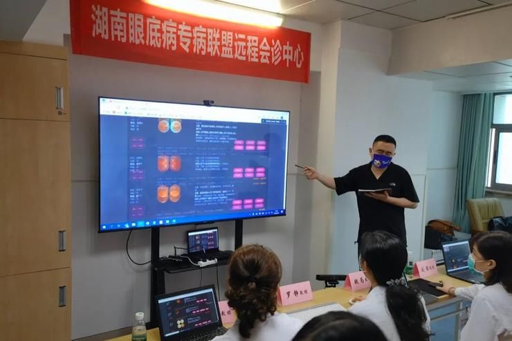 在义诊中,澧县一位49岁女性进行眼底照相后,马上被人工智能技术识别出糖尿病视网膜病变,诊断结果在当地一键上传到了千里之外的湘雅二医院眼科专家面前,会诊考虑是重度增殖期糖尿病视网膜病变,患者需要马上治疗,意见当即返回当地眼科孙军主任。